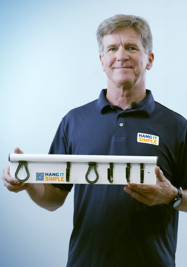 Hang It Simple is a modular wall organization system designed to help you reclaim your space with strength, simplicity, and flexibility. The rails are made from durable plastic rails, slide-in hooks, and adjustable rubber loops, it’s built to handle real life — and look good doing it. Whether it’s tools in the garage, gear in the mudroom, or dog leashes by the door, it holds up, blends in, and installs fast — with no clutter left behind.